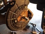 Remove the 2 H8 Allen head bolts holding the caliper bracket on, remove bracket. (don't worry about the washers, they're non-removable)